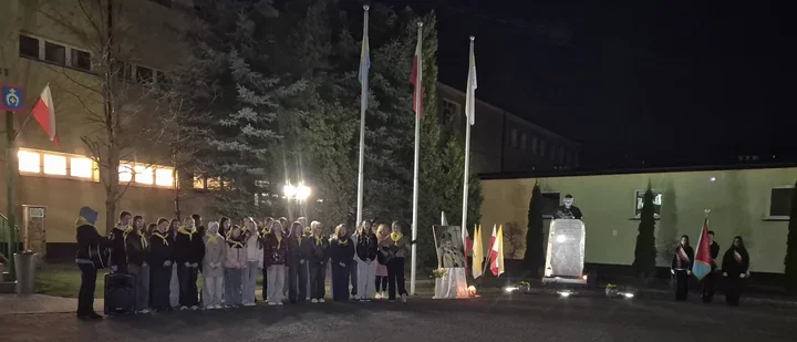 Wieczór przy szkolnym pomniku w Łapach miał w sobie coś z cichej lekcji pamięci. Uczniowie, rodzice, nauczyciele i samorządowcy przyszli tam bez pośpiechu, w rytmie, który narzucała rocznica i postać patrona szkoły. W takich chwilach najmocniej wybrzmiewają proste gesty – modlitwa, wspólny śpiew i płomienie zniczy.