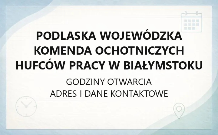 Podlaska Wojewódzka Komenda Ochotniczych Hufców Pracy w Białymstoku - kontakt, godziny, informacje